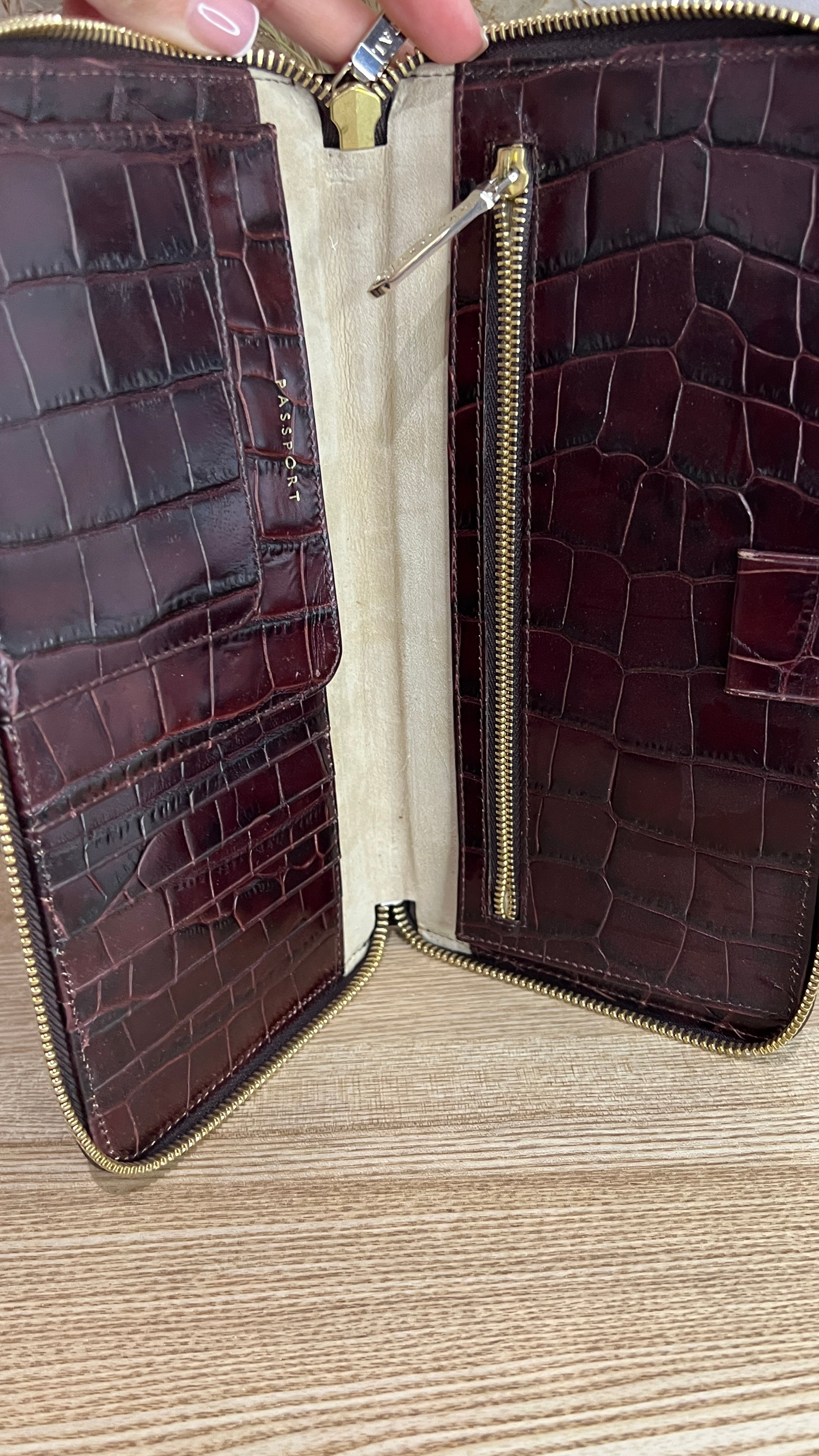 Aspinal of London Burgundy Croc Embossed Passport Holder