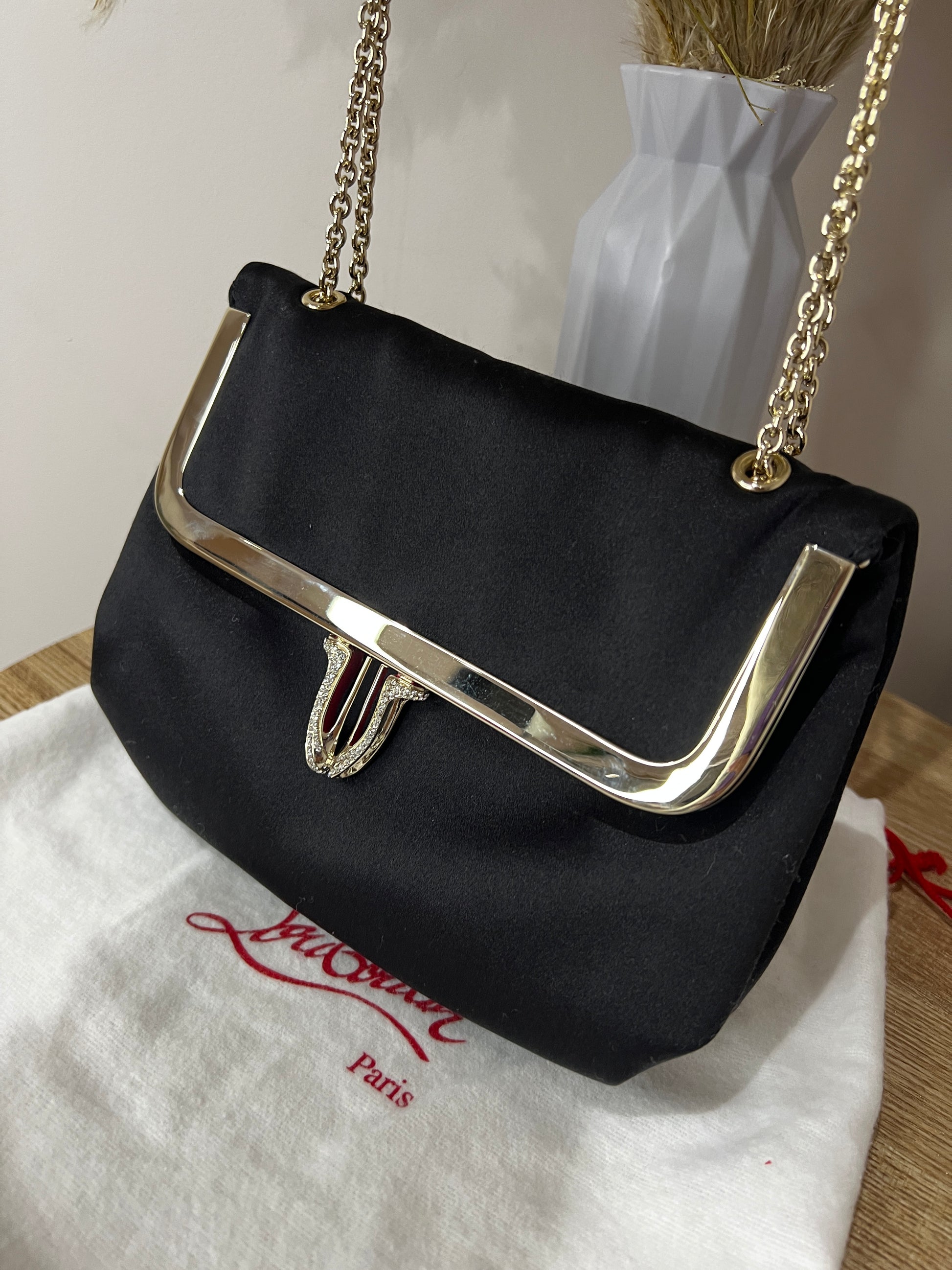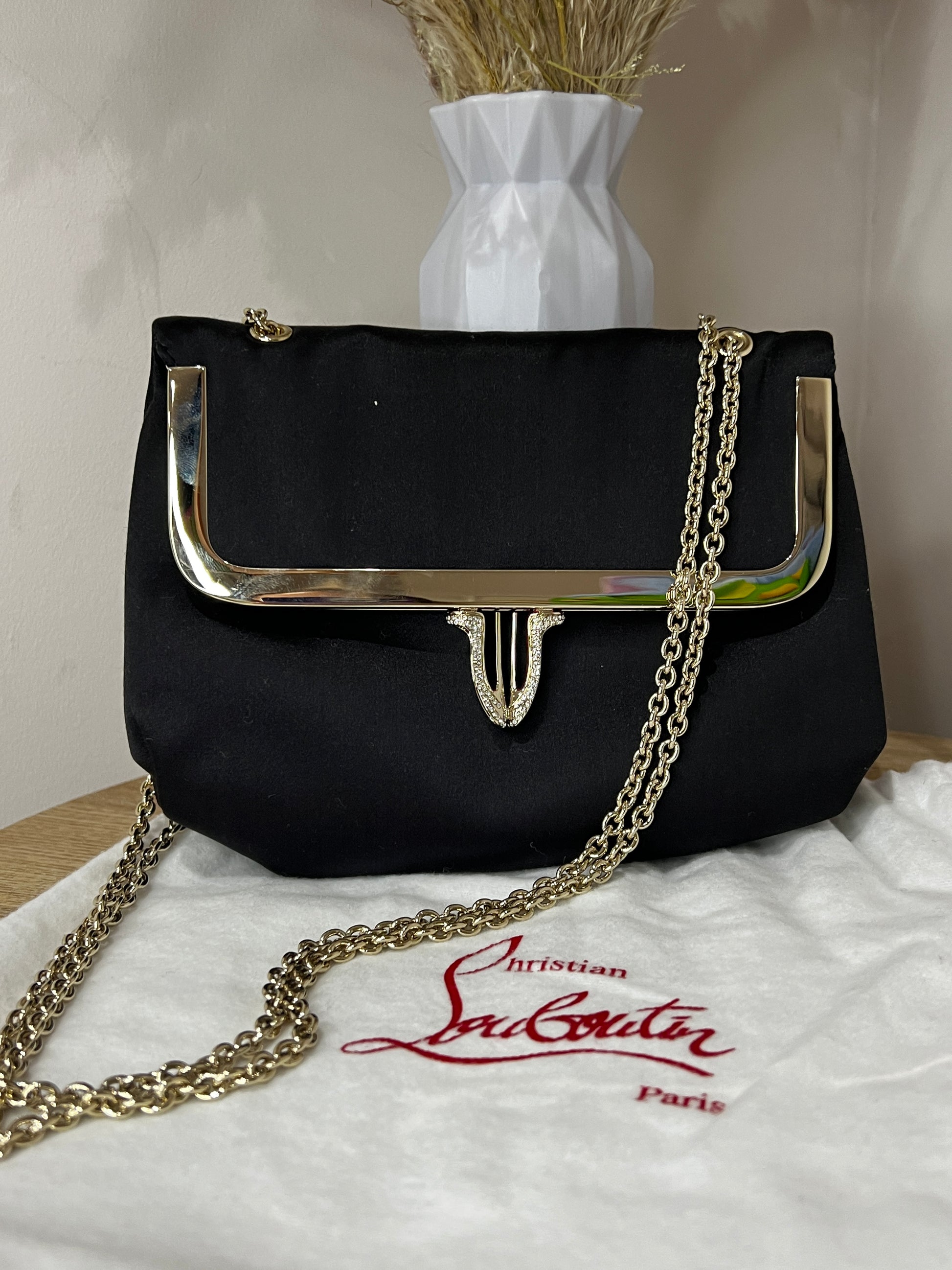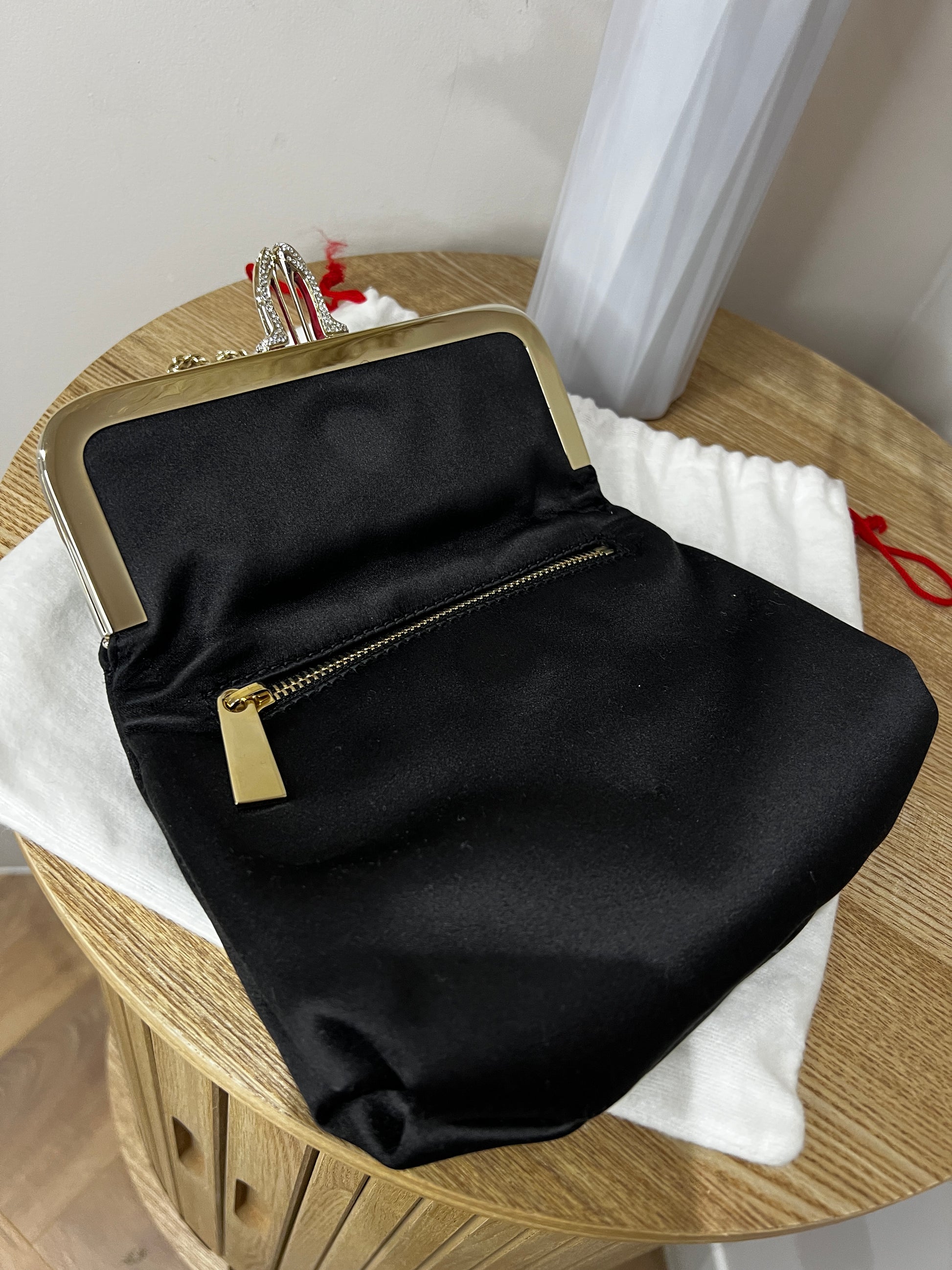 Christian Louboutin Mia Black Satin Clasp Evening Bag