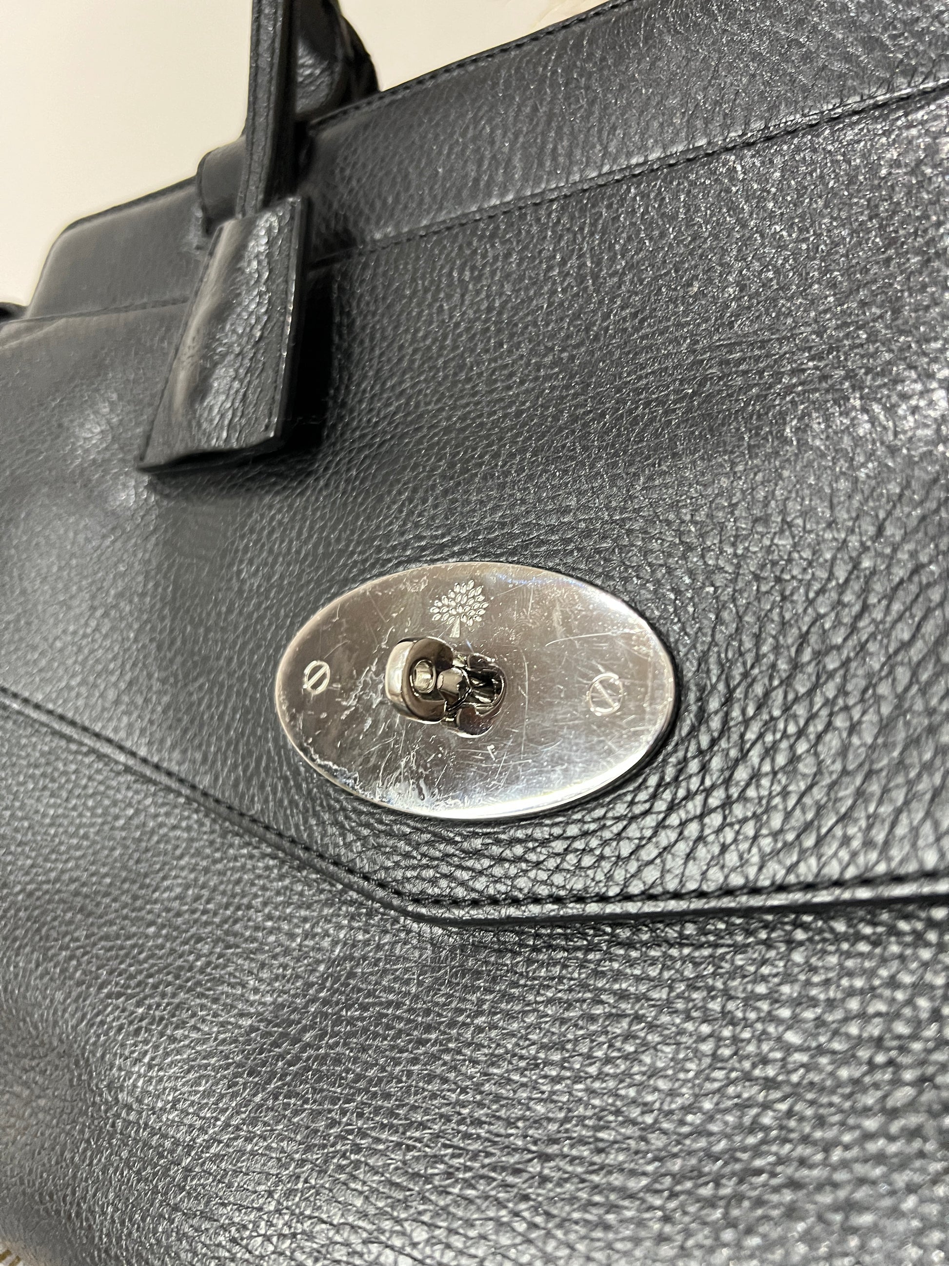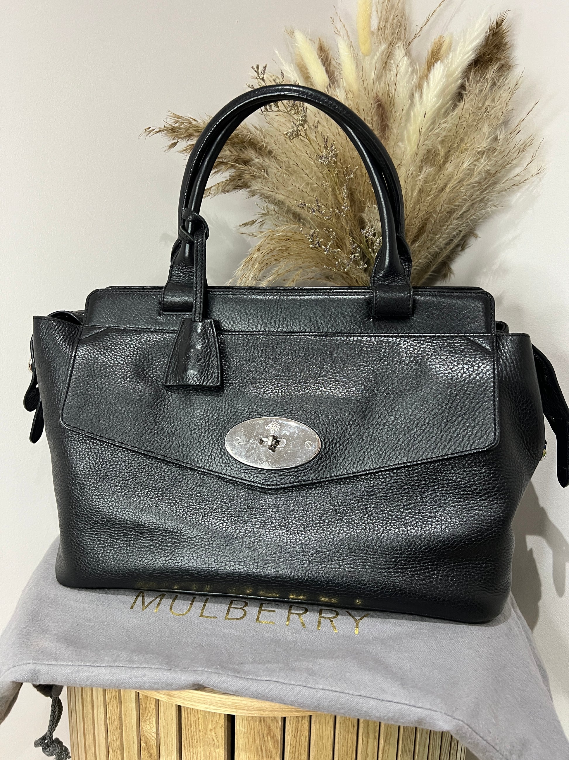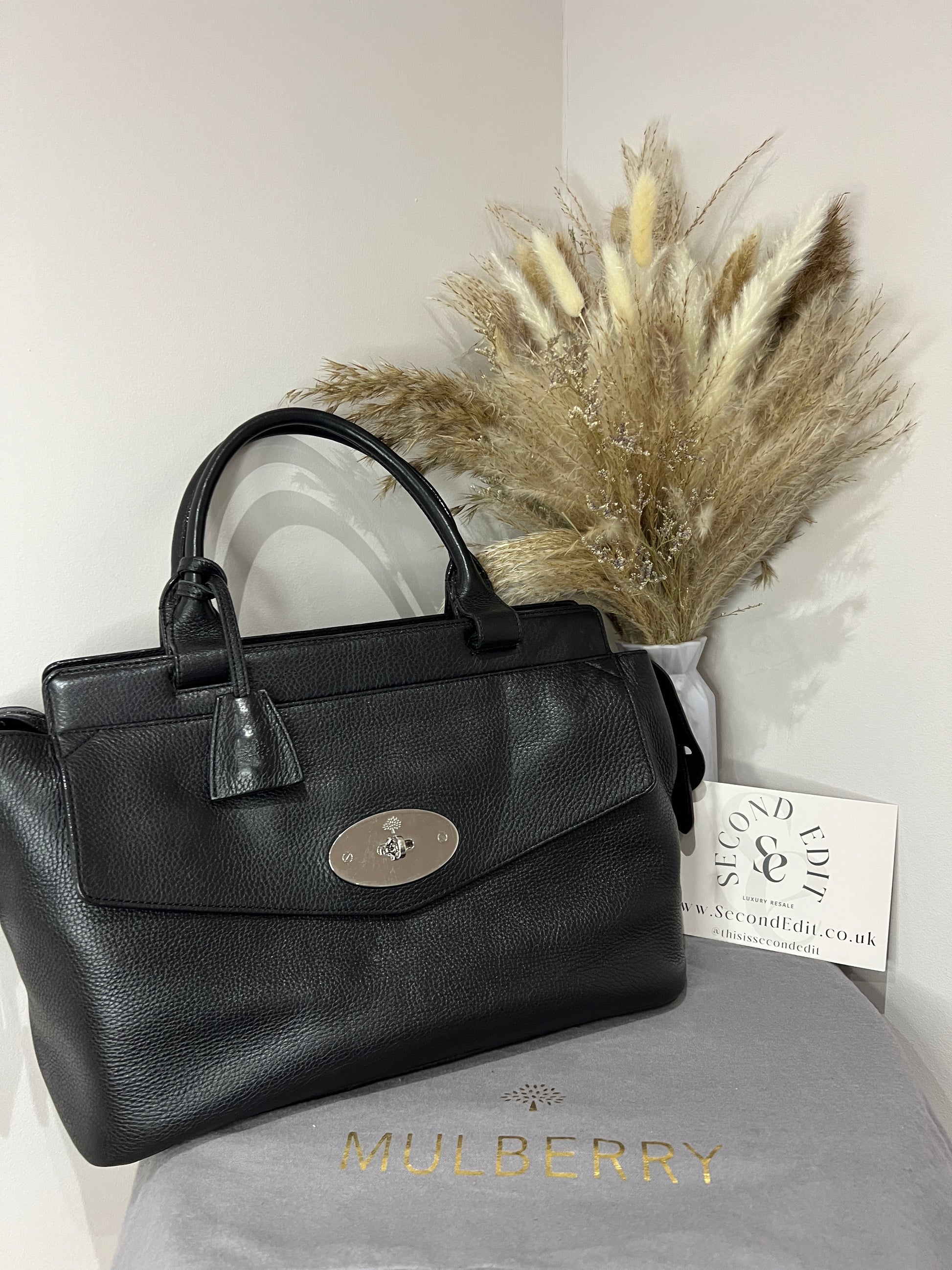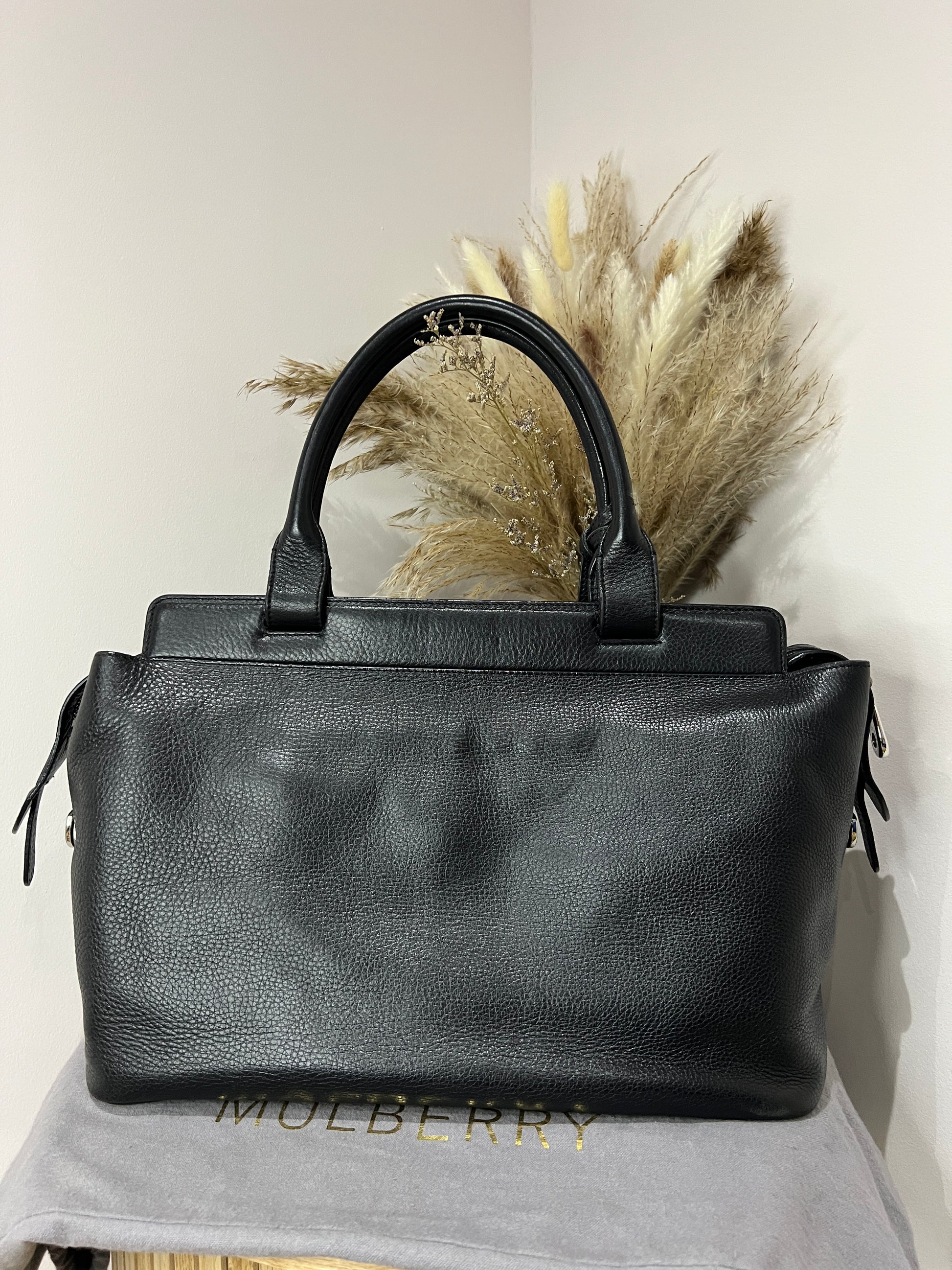 Elevate your everyday style with the Mulberry Blenheim Small Leather Tote in classic black. Crafted from premium leather, this beautifully structured tote (34x25x17cm) embodies sophistication and practicality, making it the perfect companion for both workdays and weekends. Its spacious interior, accented with signature Mulberry detailing, effortlessly accommodates your essentials, while sturdy top handles and tabs for a crossbody strap provide versatile carrying options. Finished with subtle hardware and refined stitching, the Blenheim tote is a testament to Mulberry's iconic craftsmanship and timeless elegance. Whether you’re stepping into the office or heading out for a day in the city, the Mulberry Blenheim adds a touch of luxury to every look.