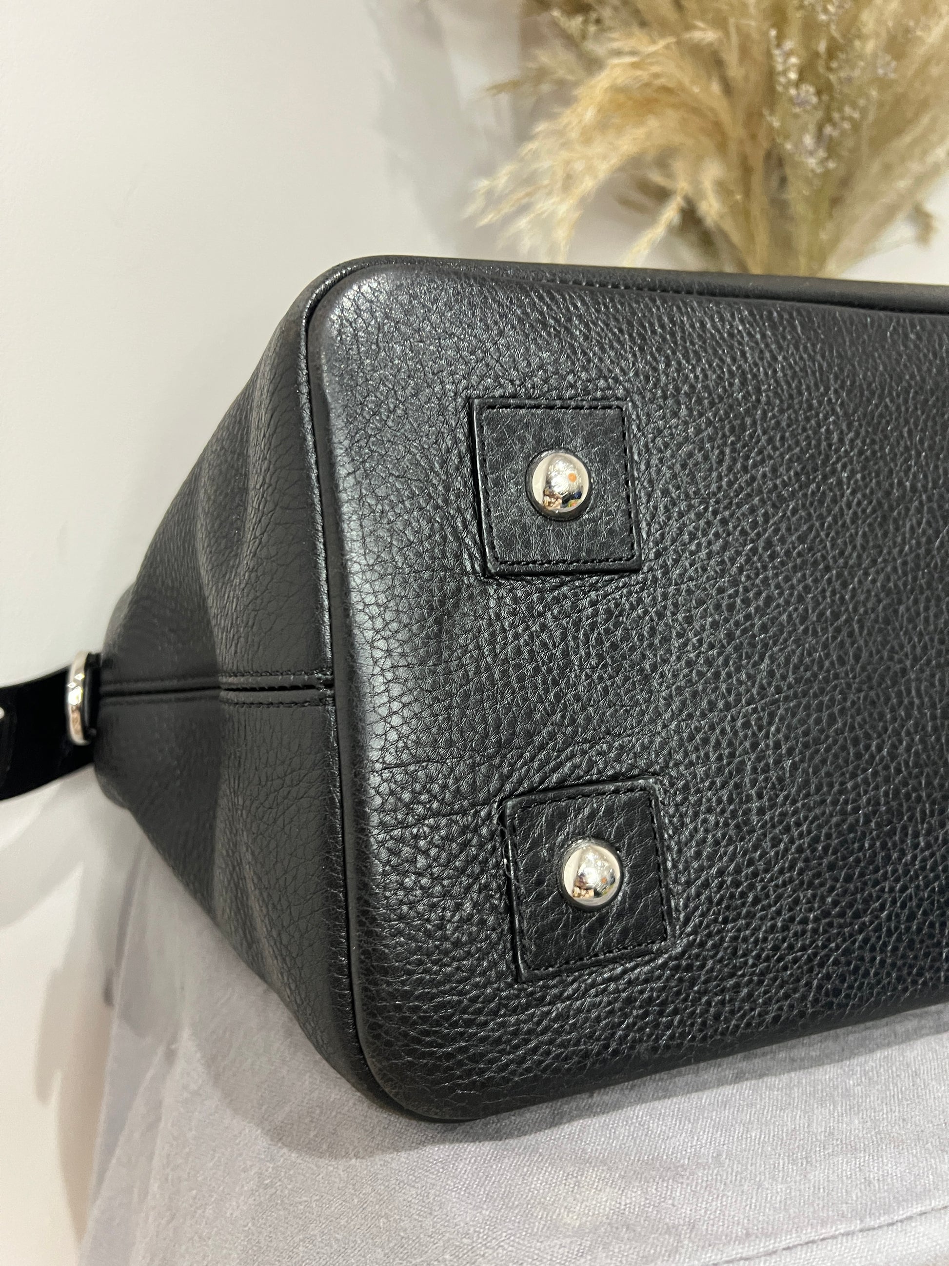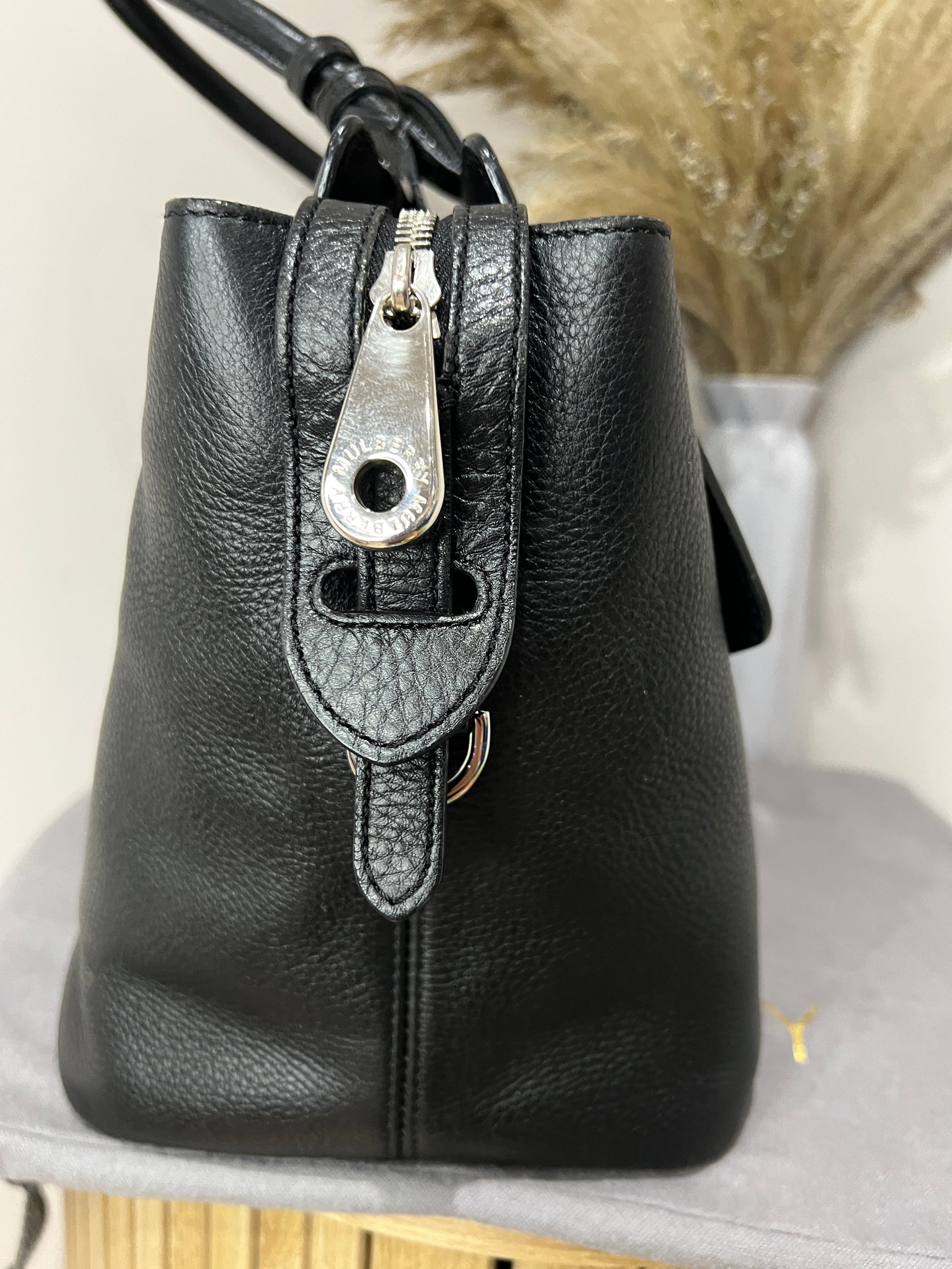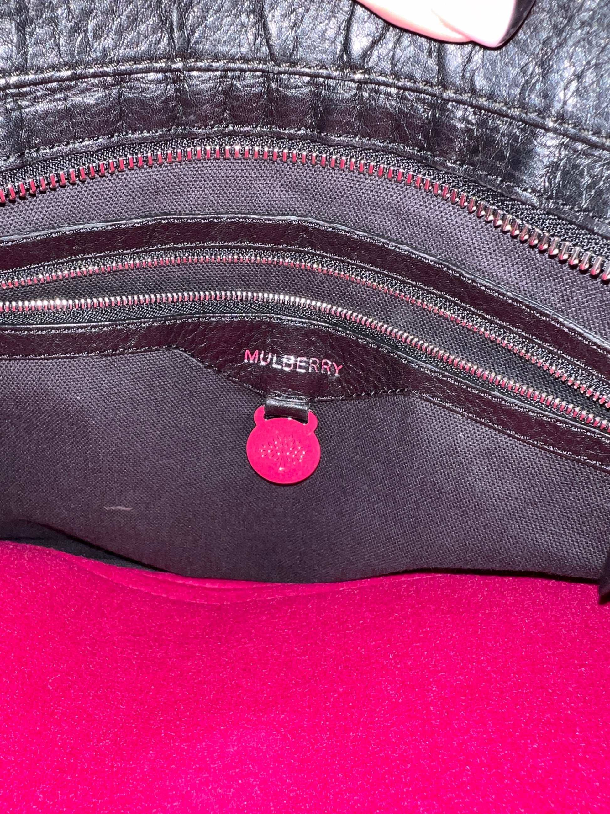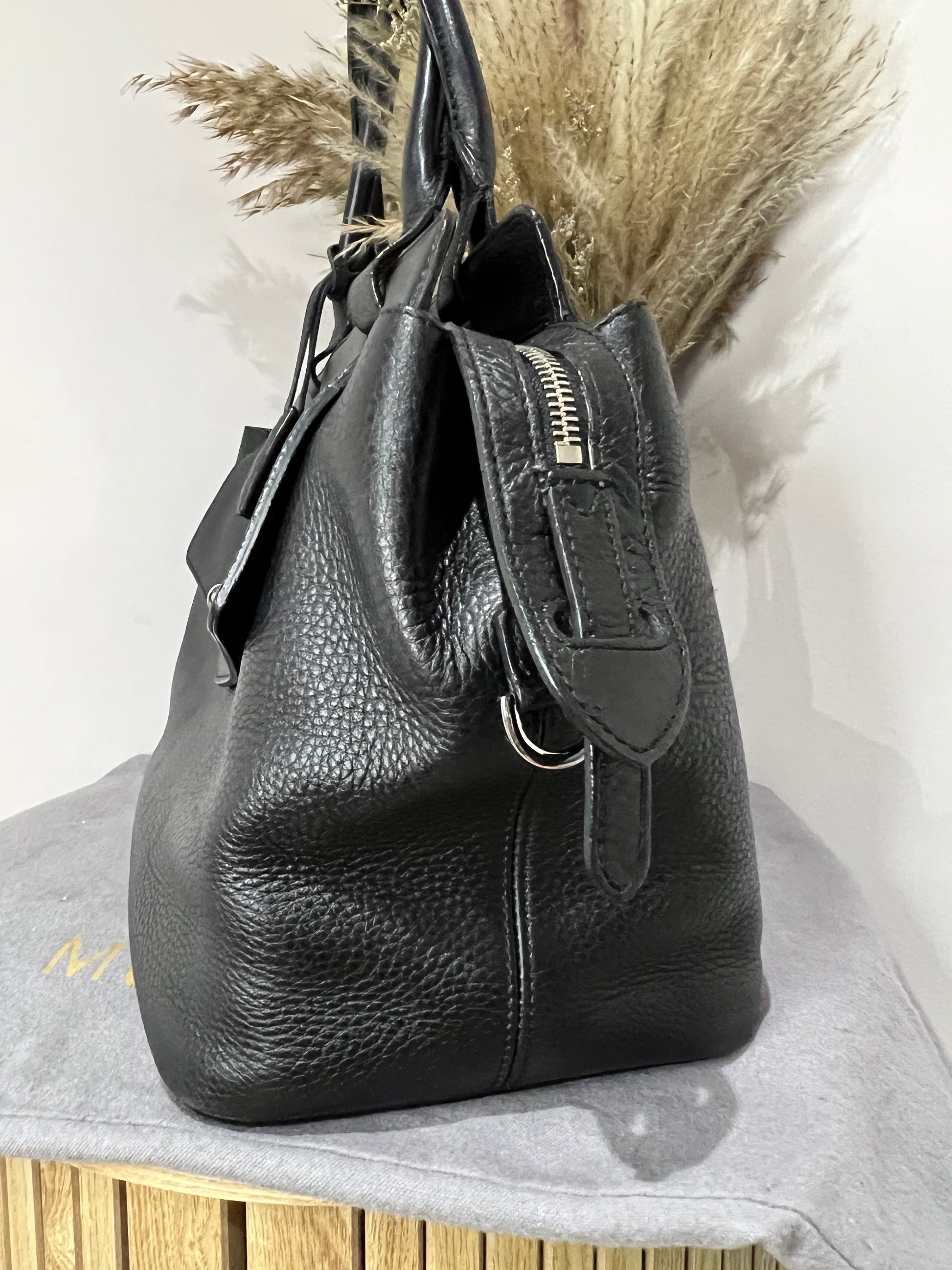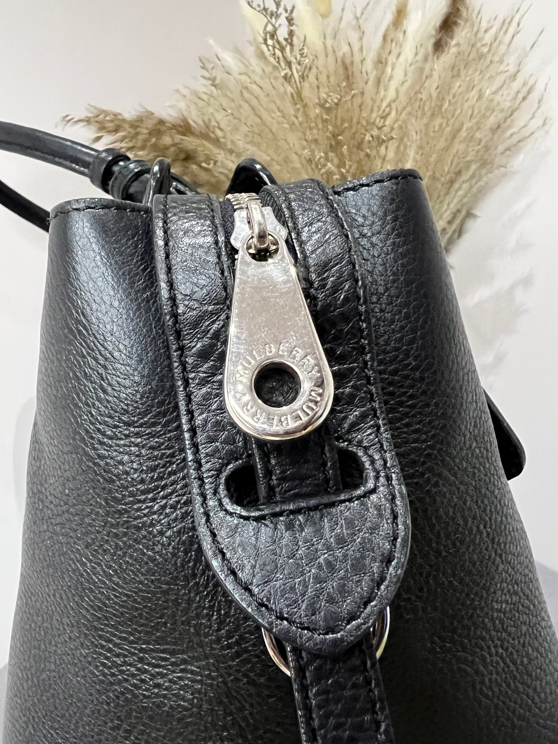Elevate your everyday style with the Mulberry Blenheim Small Leather Tote in classic black. Crafted from premium leather, this beautifully structured tote (34x25x17cm) embodies sophistication and practicality, making it the perfect companion for both workdays and weekends. Its spacious interior, accented with signature Mulberry detailing, effortlessly accommodates your essentials, while sturdy top handles and tabs for a crossbody strap provide versatile carrying options. Finished with subtle hardware and refined stitching, the Blenheim tote is a testament to Mulberry's iconic craftsmanship and timeless elegance. Whether you’re stepping into the office or heading out for a day in the city, the Mulberry Blenheim adds a touch of luxury to every look.