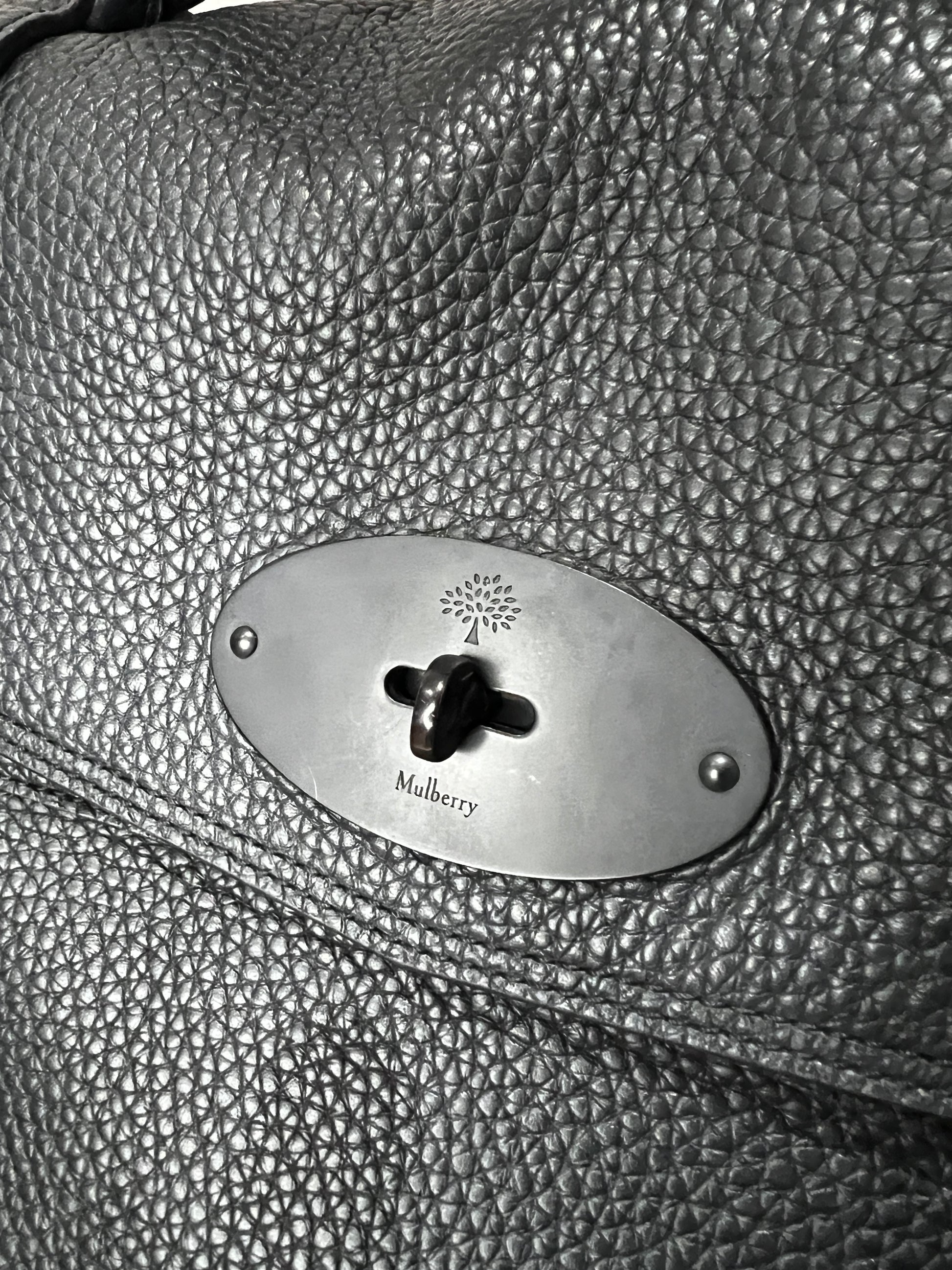 Elevate your everyday style with this preloved Mulberry Oversized Alexa, a timeless favourite among designer handbag lovers. Crafted from durable black heavy grain leather, this iconic satchel combines British heritage design with effortless modern appeal. Featuring the signature braided top handle, postman's lock, and double buckle front straps, it offers both elegance and functionality. Its generous interior makes it perfect for work, travel, or day-to-day wear. A must-have for any luxury handbag collection.